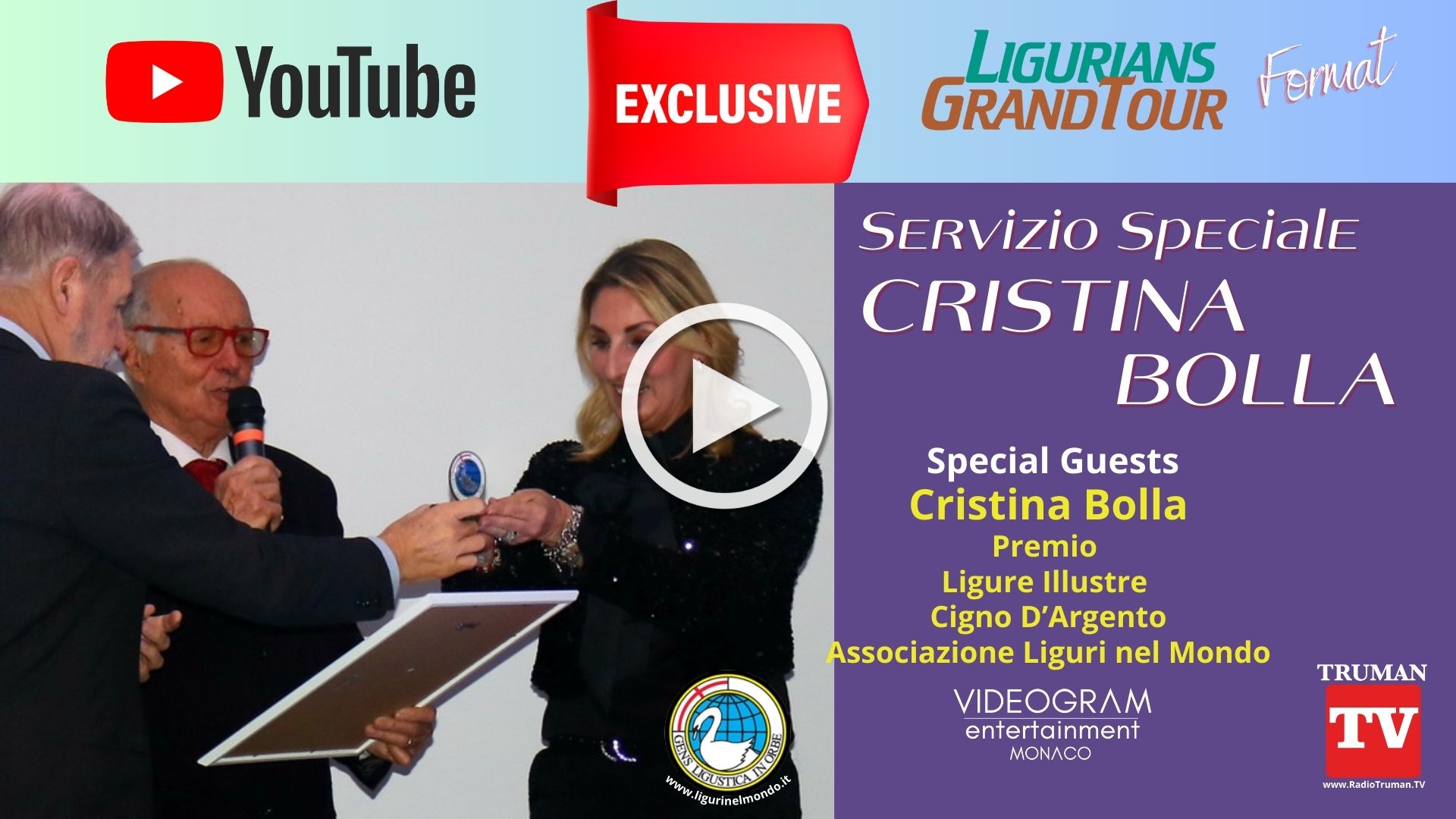 Presenta la puntata: Cristina Montepilli, presentatrice, editrice e Autrice tv Videogram Montecarlo. Conduce il Format Tv "Ligurians" serie web Ligurians GrandTour Cristina Montepilli. Il Format tv ed i contenuti sono una produzione Videogram di Montecarlo in esclusiva per TRUMAN TV.