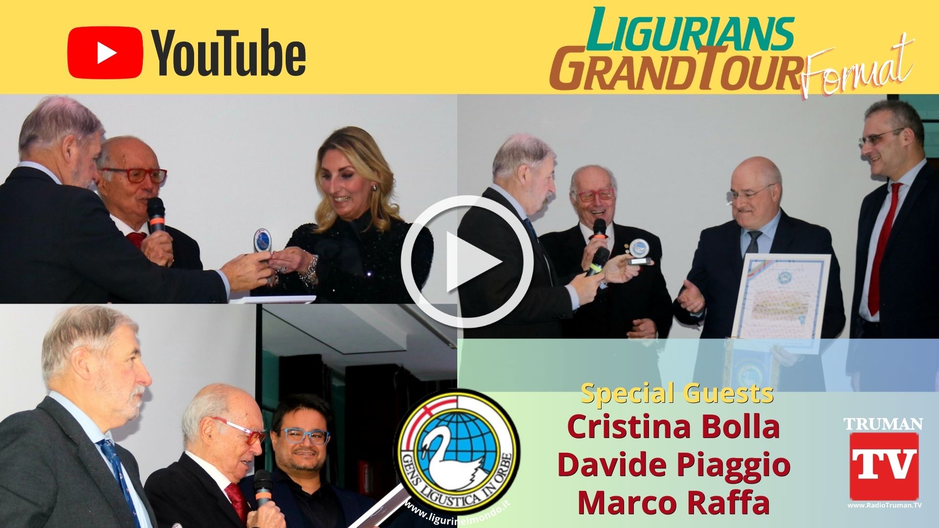 Seguire la programmazione di TRUMAN TV per vedere la puntata dedicata alla consegna dei riconoscimenti del Cycnus D'Argento per i "Liguri Illustri" durante la Cena di Natale organizzata dall'Associazione Liguri nel Mondo ALM ... oppure collegarsi al Canale YouTube di RadioTruman Tv per i contenuti esclusivi e le interviste ai protagonisti della serata...Dal solo Canale YouTube di RadioTrumanTv è possibile condividere i contenuti sui social, iscriversi al Canale per rimanere sempre aggiornati sui contenuti.