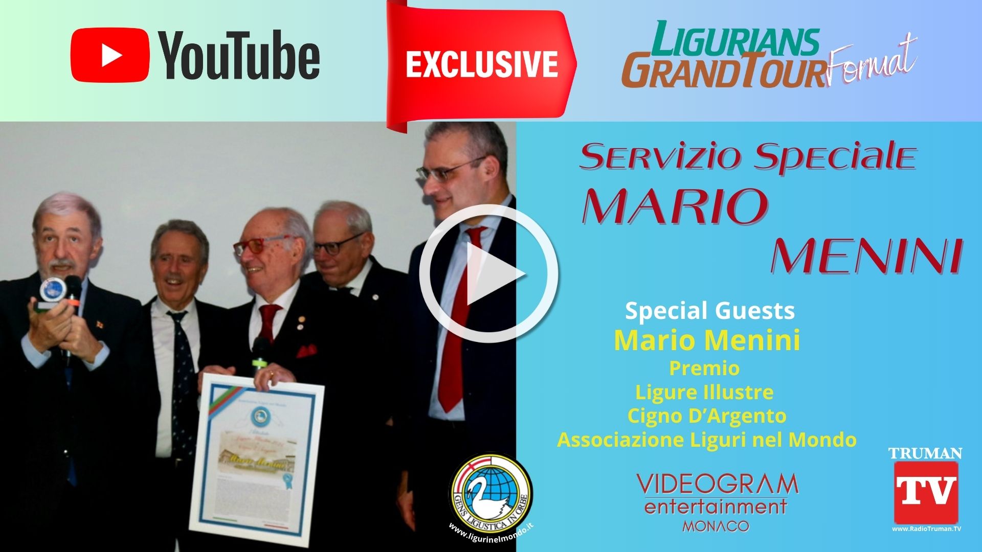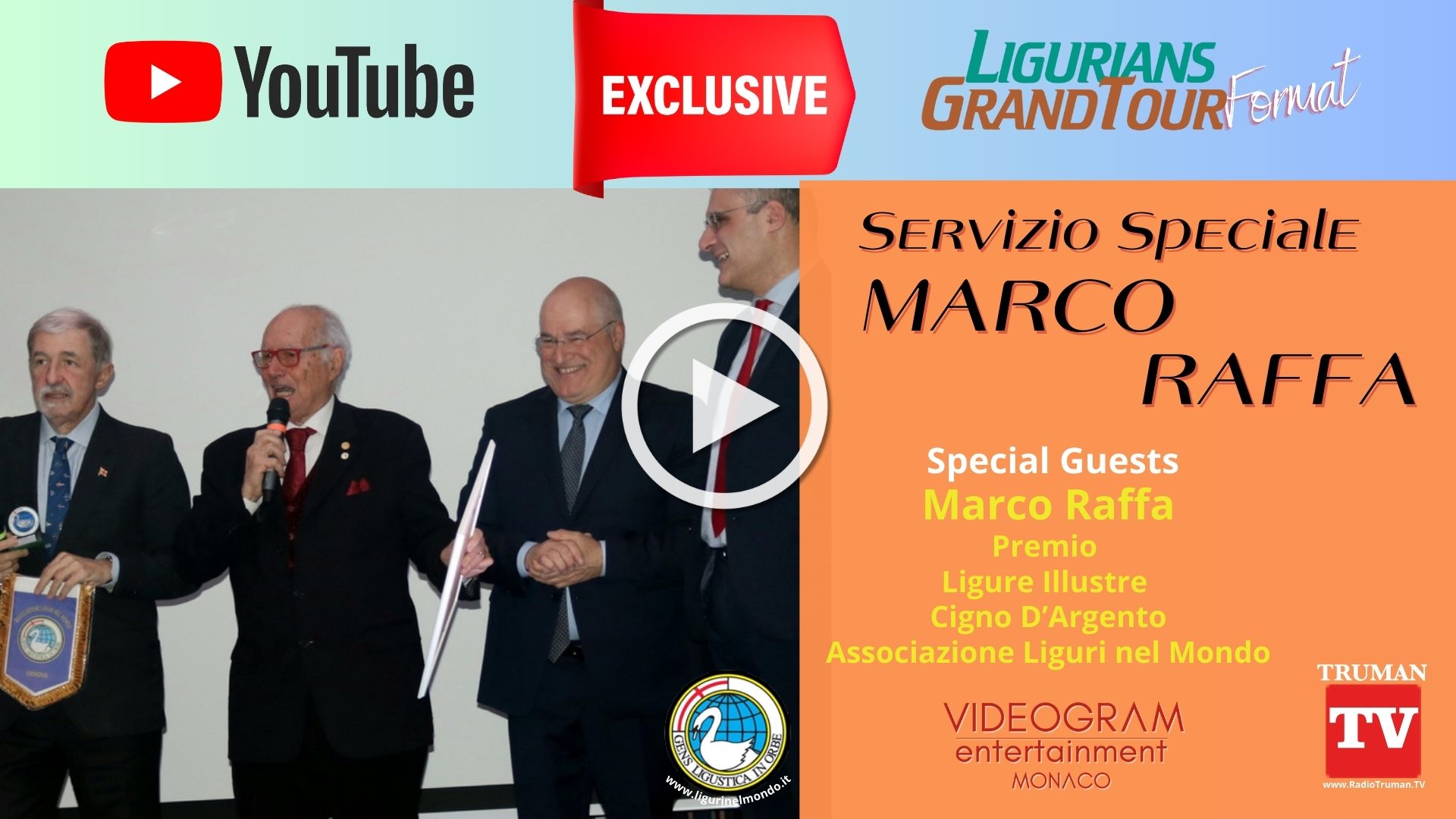Nel Format Ligurians Grand Tour sono trasmesse le speciali puntate dedicate ai protagonisti della consegna dei riconoscimenti "Ligure Illustre" "Cigno d'Argento" ALM Associazione Liguri nel Mondo.